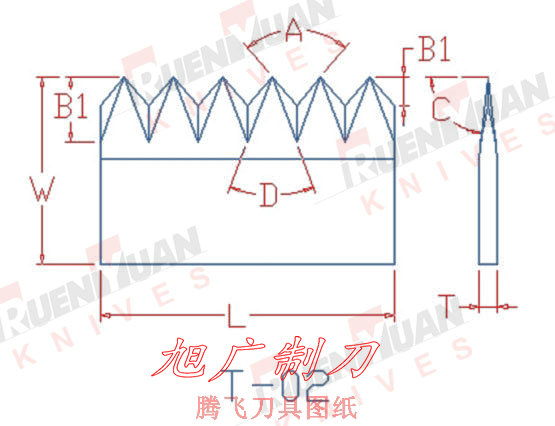本公司專業生產各種齒形刀:圓齒刀、長齒刀、異形齒刀等刀片,齒刀片鋒利、耐磨、無毛刺。