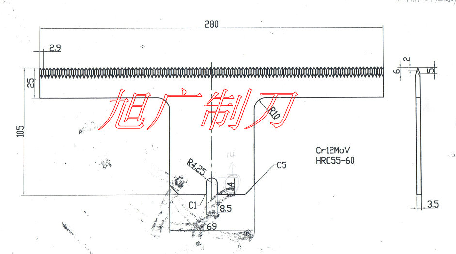 本公司專業生產各種齒形刀:圓齒刀、長齒刀、異形齒刀等刀片,齒刀片鋒利、耐磨、無毛刺。