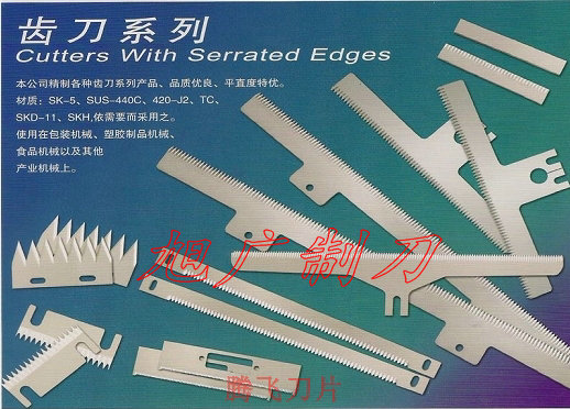 本公司專業生產各種齒刀、圓齒刀、長切刀等包裝機刀片,公司致力于刀片高新材料的研發與制造,不斷更新優良的工藝,推行現代企業管理模式。