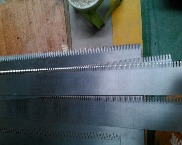 齒刀常用材質:SK-4、SK-5 、SK-2、SUS-440C 、420-J2 、SKD-11 、SKH9 、SKH2 、M35、M42等優質鋼材。廣泛用于包裝機械,塑膠機械,食品機械等的制袋機刀片,封箱機刀片,切膠帶刀片,旋轉印刷機刀片,充填包裝機刀片,計量包裝機刀片,食品充填包裝機刀片,外包裝機刀片,化學工業機械刀片等各種鋸齒刀片。