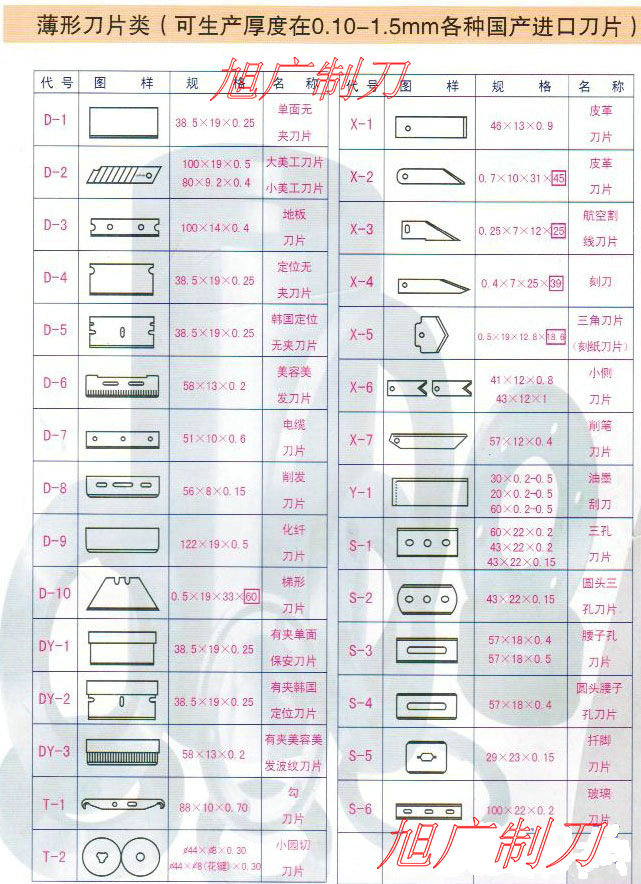 我公司專業生產各種薄形異形刀片,選用優質刀片特種鋼為原料,運用線切割、激光切割、先進的磨口技術、真空熱處理設備以及專業的技術人員,確保產品的質量和交貨周期。產品主要用于分切膠粘帶、塑料薄膜、醫用分切、紙張、化纖、紡織、針織無紡布等行業。