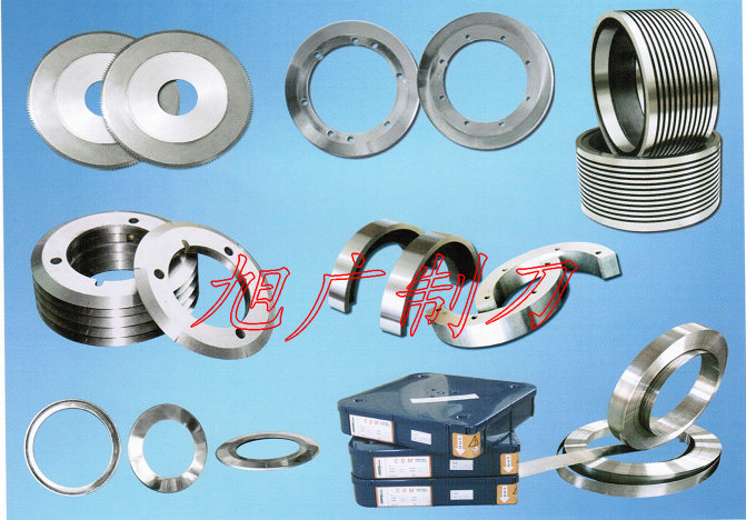 分切刀片即是圓形刀片,主要用于膠帶、紙張、薄膜、金、銀箔、鋁箔、銅箔等物品的分切,要求刀片切斷阻力最小,耐磨損性******。選料:LD,SKD-11,SKH-51,9CrSi,Cr12Mov,W6Mo5CrV2,W18Cr4V等.