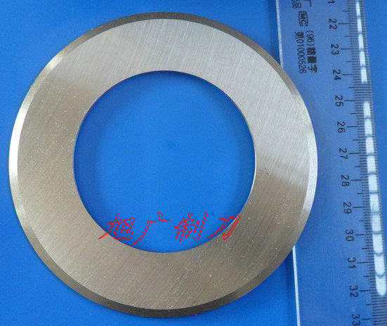 圓盤(pán)刀片即是圓形刀片,主要用于膠帶、紙張、薄膜、金、銀箔、鋁箔、銅箔等物品的分切,要求刀片切斷阻力最小,耐磨損性******。選料:LD,SKD-11,SKH-51,9CrSi, Cr12Mov,W6Mo5CrV2,W18Cr4V等.